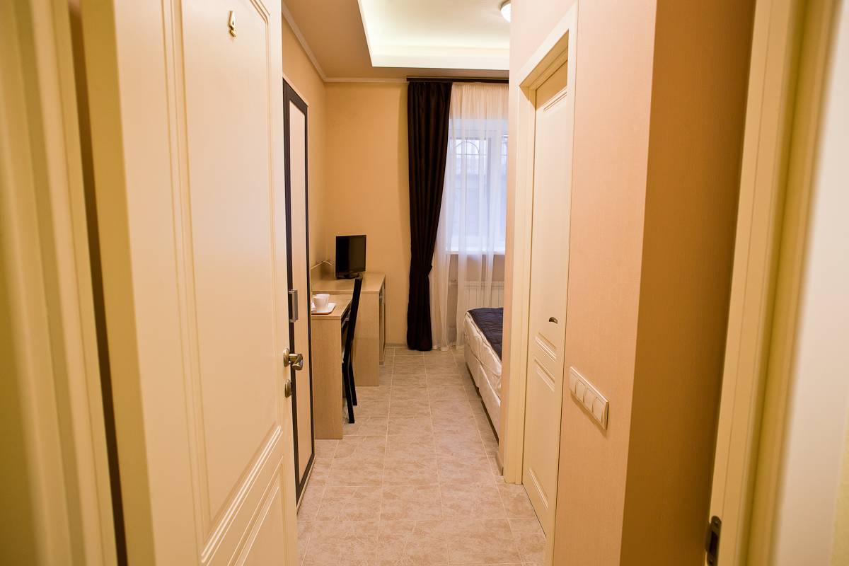 Площадь 16 м2. Современный номер, сочетающий в себе комфорт и уют. В номере: двуспальная кровать Twin (1+1), стол, шкаф, стул LED телевизор, , холодильник, сейф, чайник, фен. Халаты и тапочки, туалетные принадлежности – бесплатно.